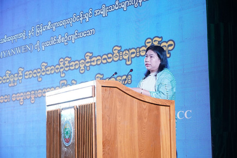 ၂၀၂၅ ခုနှစ် ဒီဇင်ဘာလ(၂၂) ရက်နေ့တွင် ရန်ကုန်တိုင်းဒေသကြီး အမျိုးသမီးရေးရာအဖွဲ့နှင့် မြန်မာစီးပွားရေး လုပ်ငန်းရှင်အမျိုးသမီးများ ကွန်ယက် (MYANWEN) တို့ ပူးပေါင်းစီစဉ်ကျင်းပသော စီးပွားရေးဖွံ့ဖြိုးတိုးတက်မှုနှင့် အလုပ်အကိုင်အခွင့်အလမ်းဆိုင်ရာ အသိပညာပေးဆွေးနွေးဟောပြောပွဲ အခမ်းအနားကို Myanmar Convention Center (MCC)၊ မင်းဓမ္မလမ်း၊ မရမ်းကုန်းမြို့ နယ်တွင် အောင်မြင်စွာ ကျင်းပပြုလုပ်ခဲ့ပါသည်။